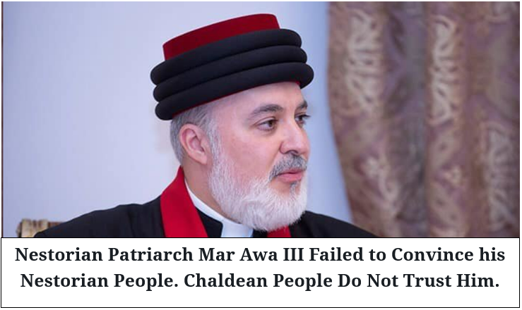 Do you see that Mar Awa the III can disobey the Nestorian faith without fear of his biased people? Surely he can’t convince his separatist Nestorian people so why is he seeking a disobedient issue? Instead, the lack of success causes the intensification of the enmity between the two peoples that have actually existed since the political change occurred in the motherland “Iraq” in 2003. Will Mar Awa III just stop trying to have no success at all!